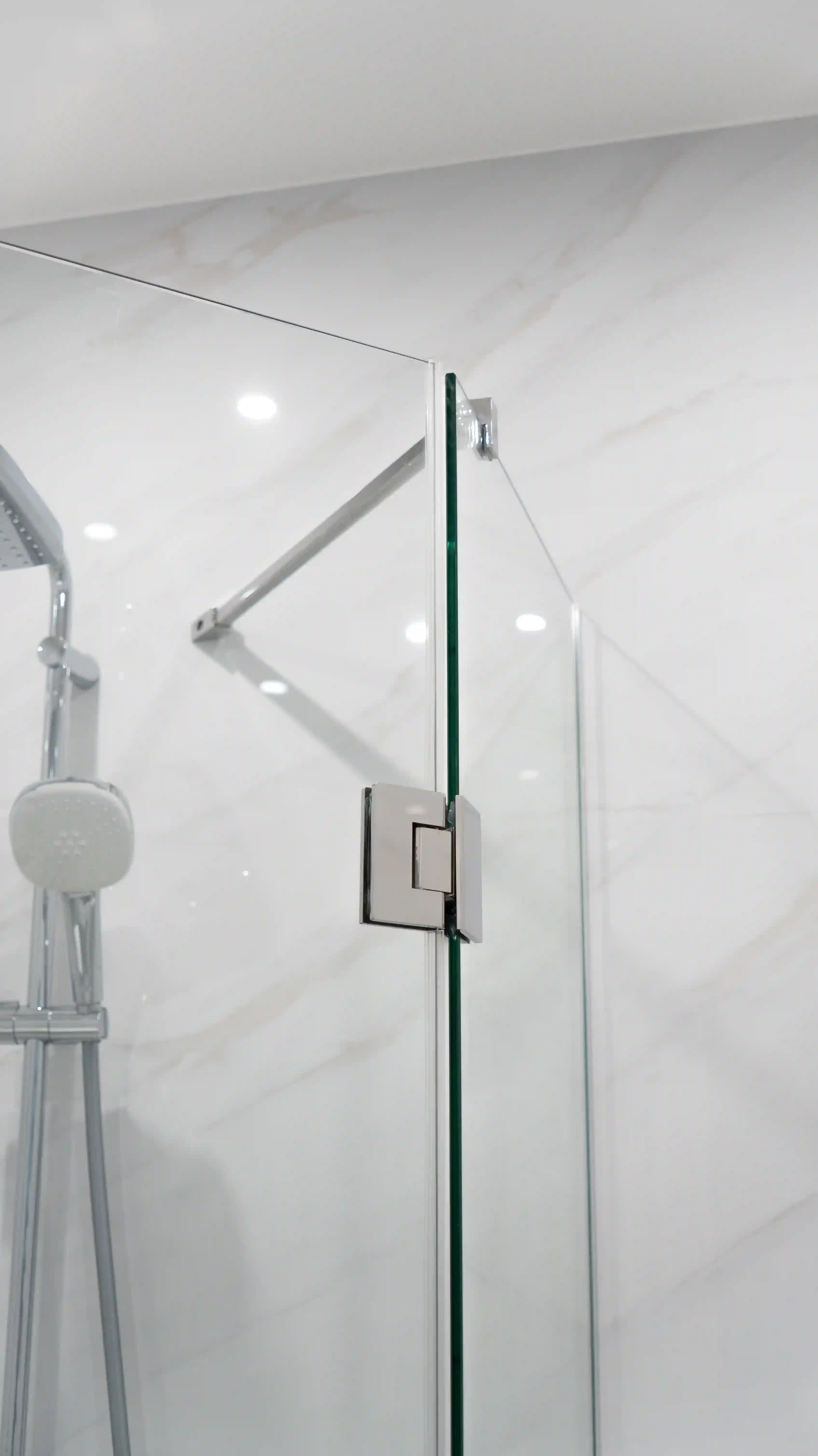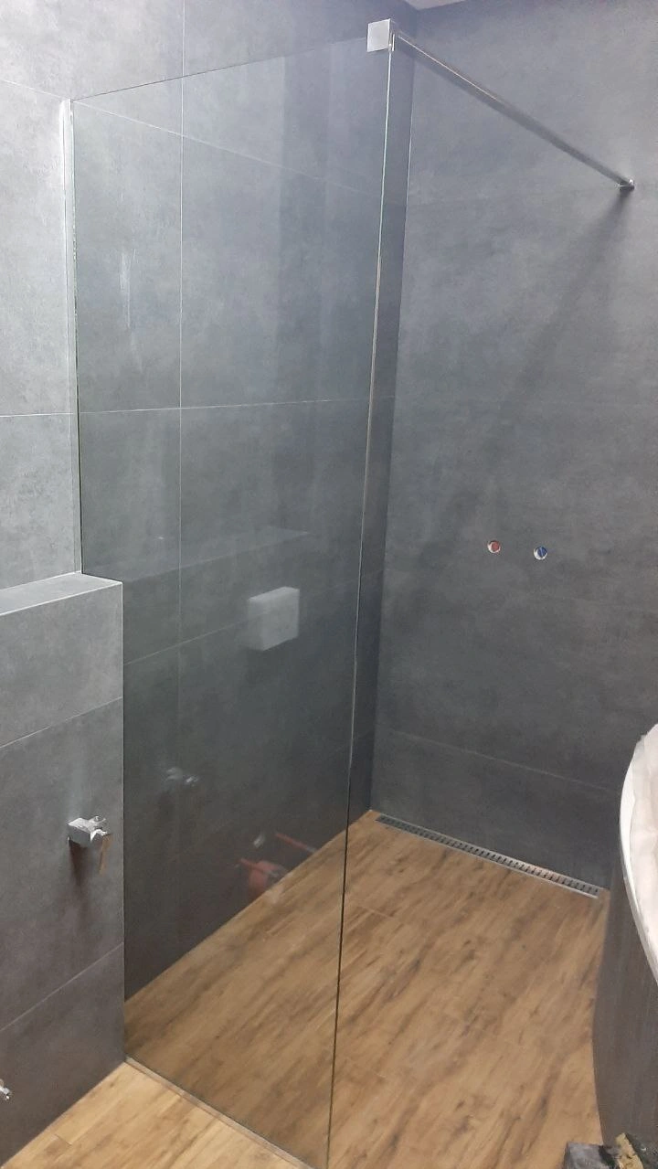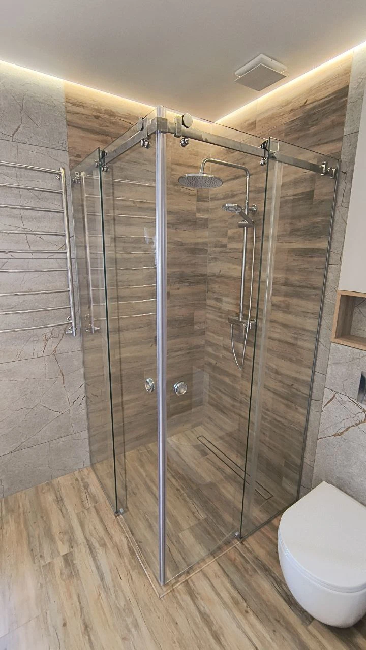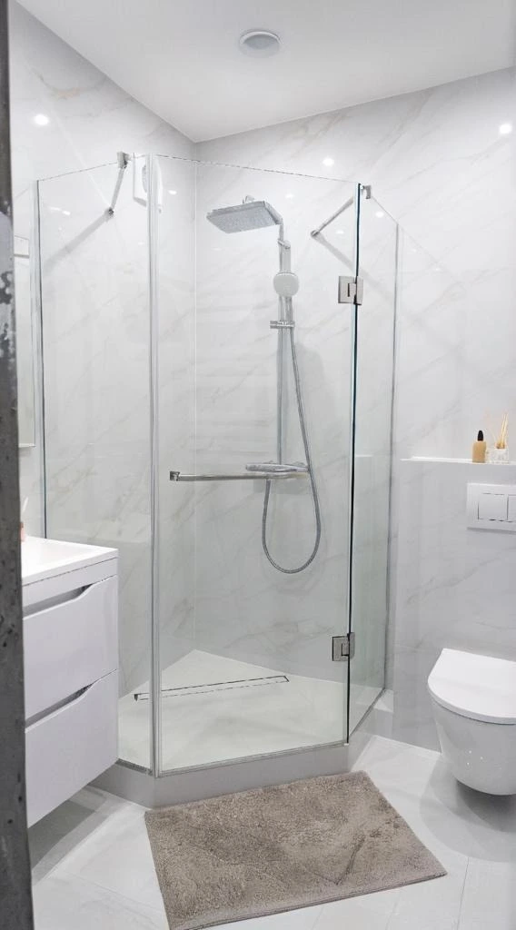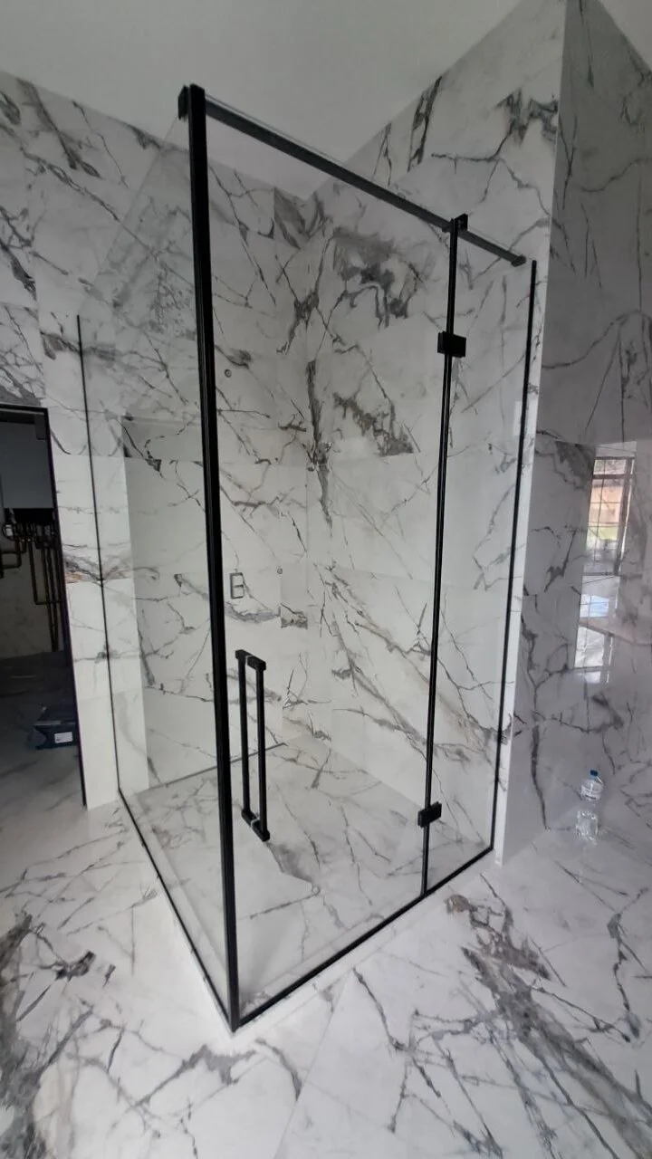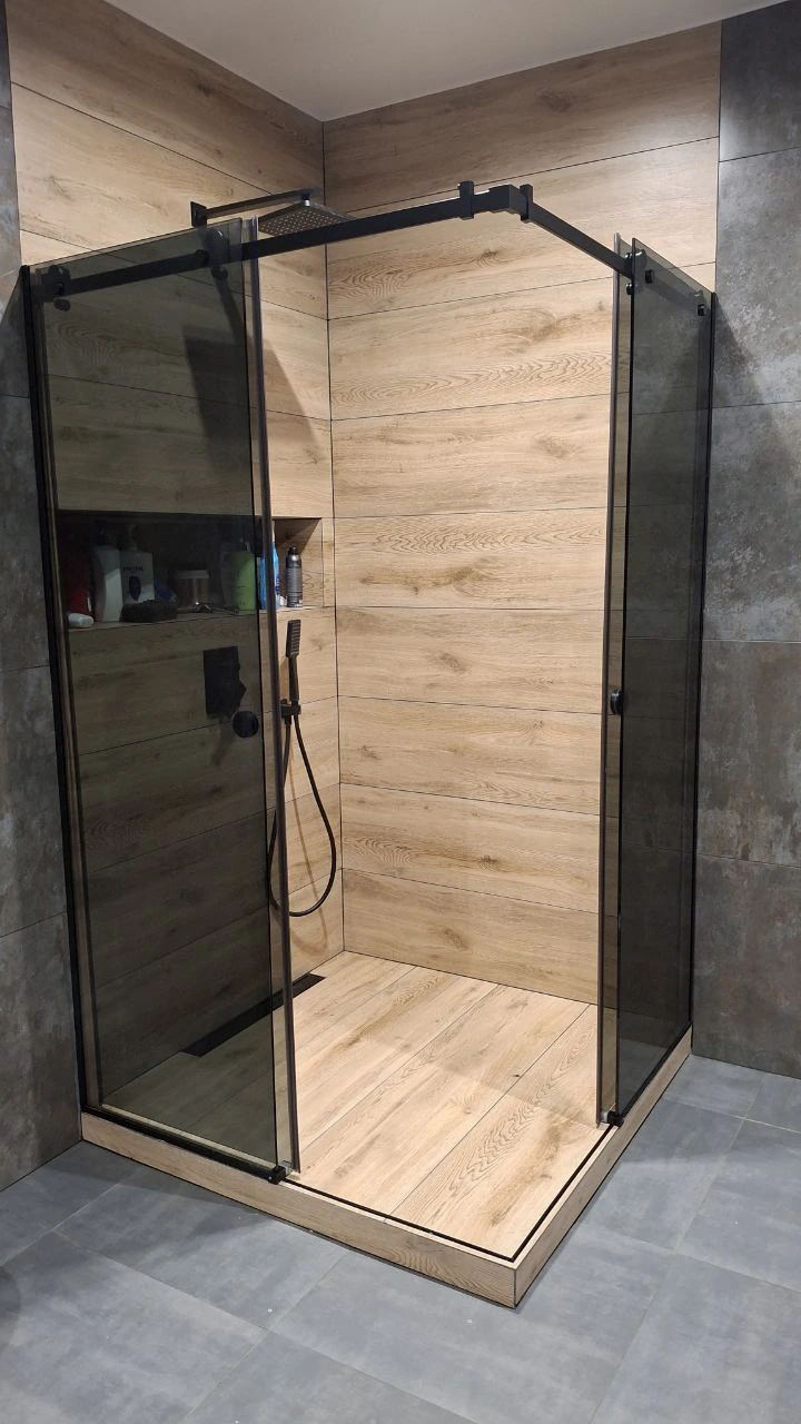 Душова виготовляється точно за розмірами вашого приміщення. Підійде навіть у найскладніші місця: вузькі ніші, перепади стін, скошені стелі або виступи