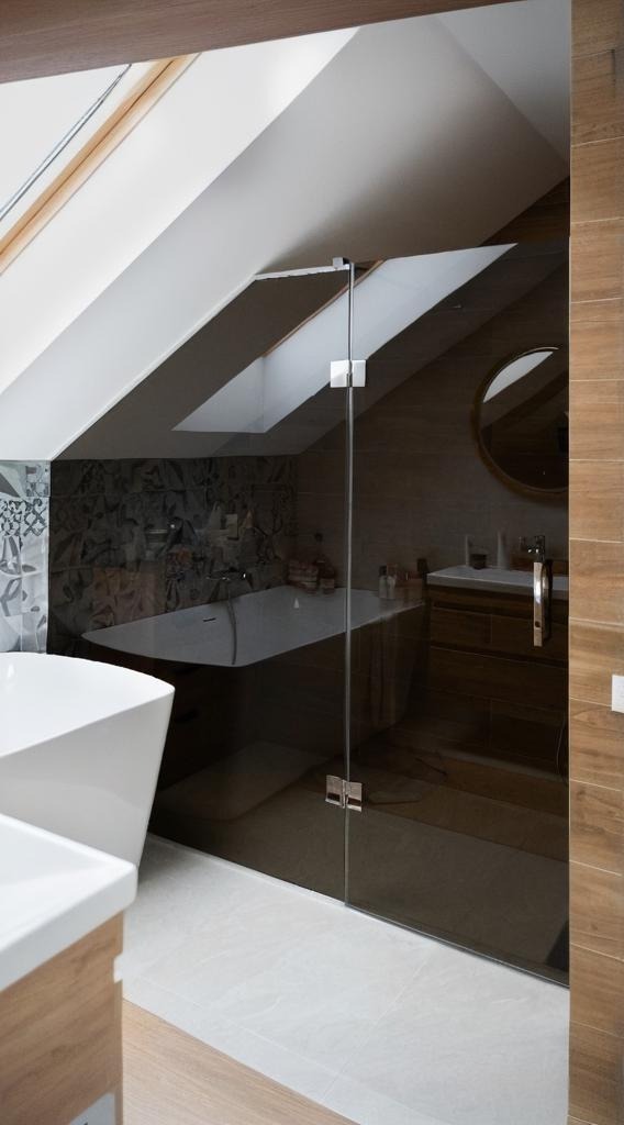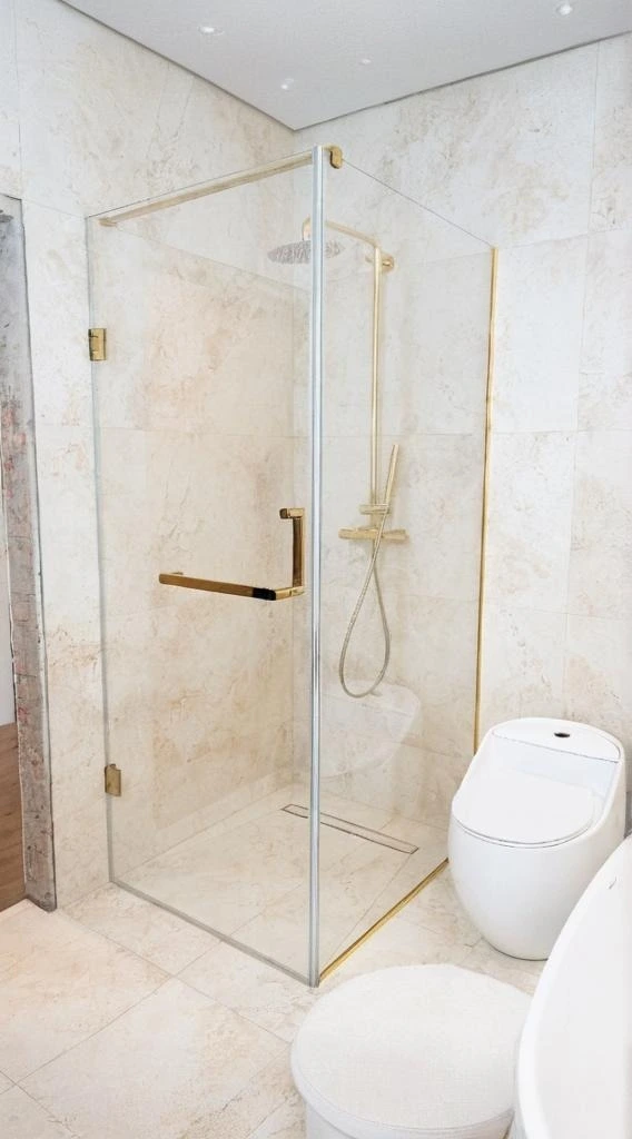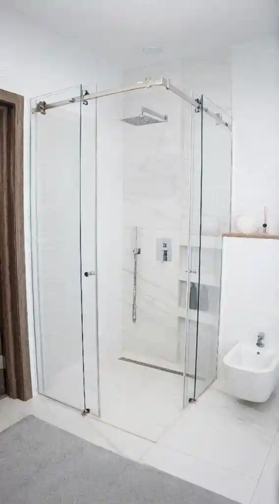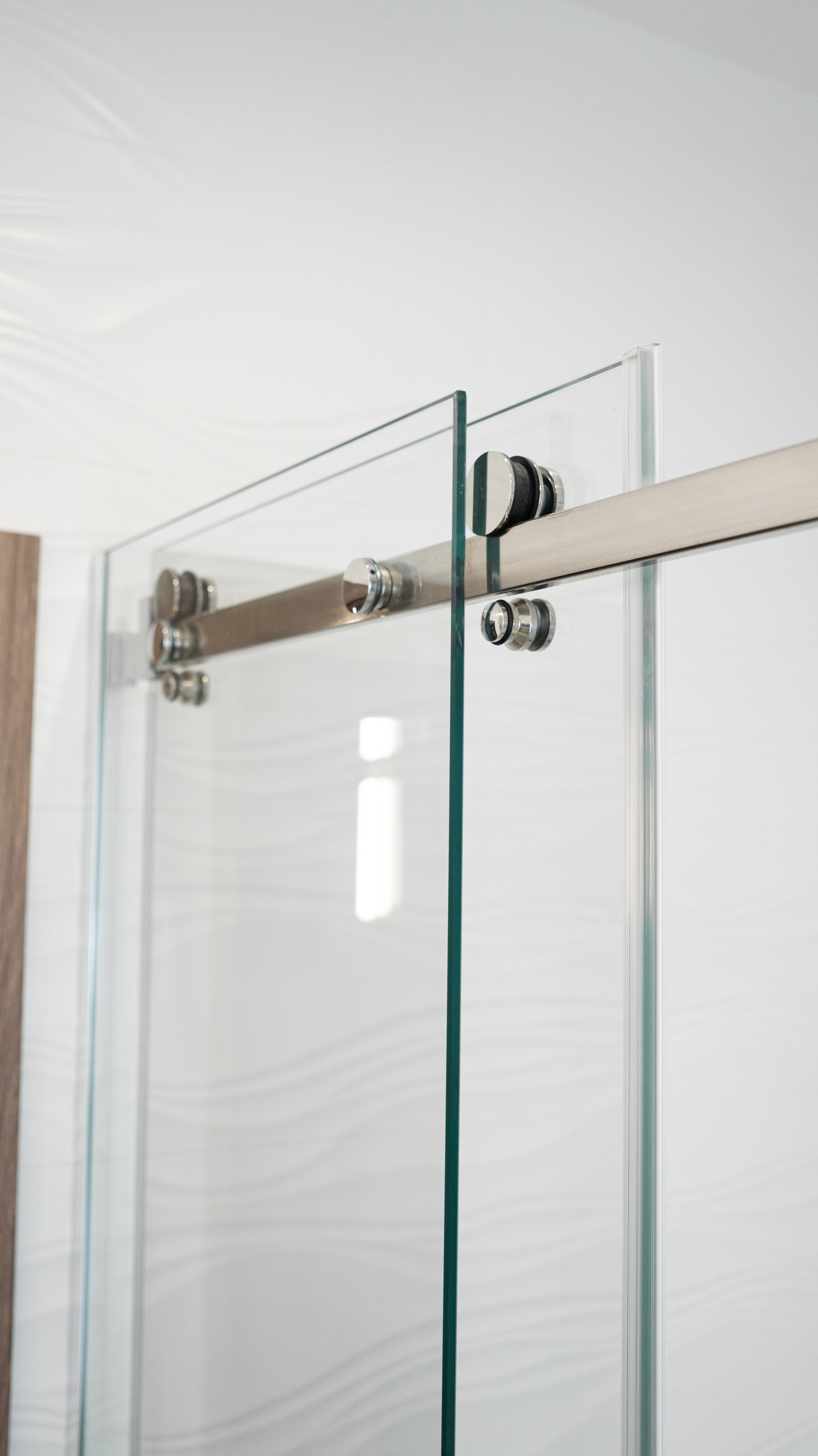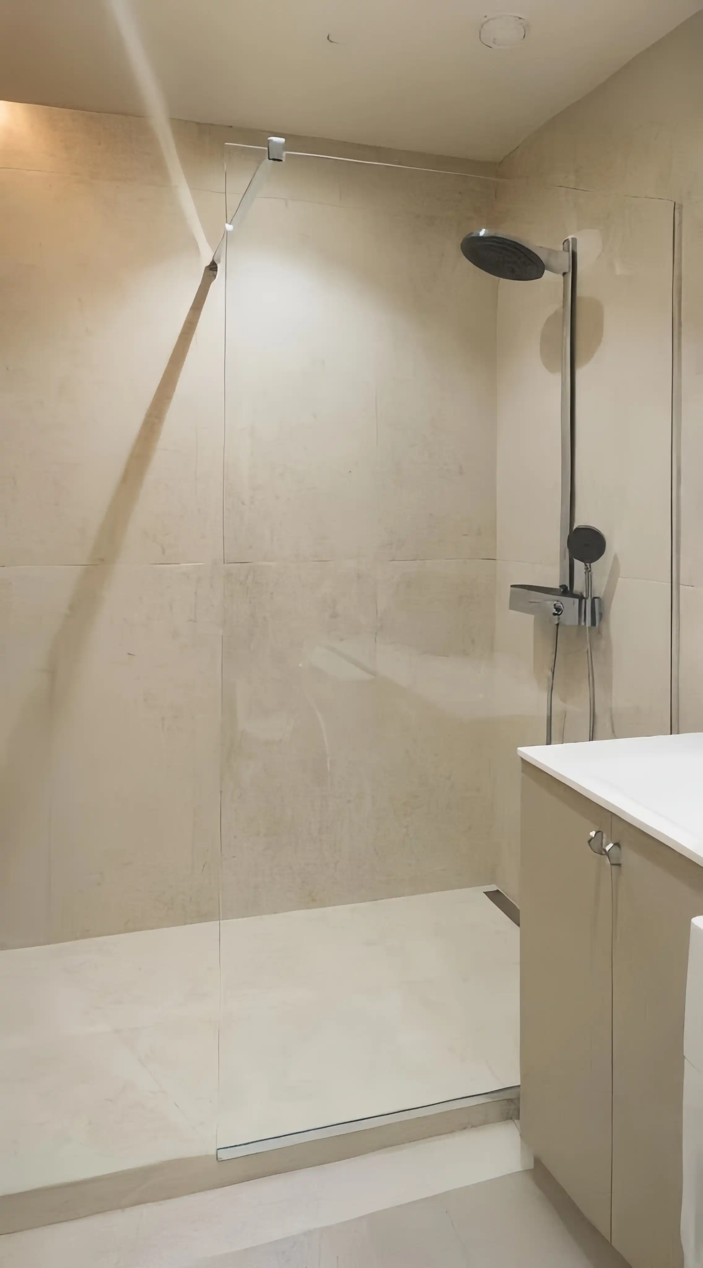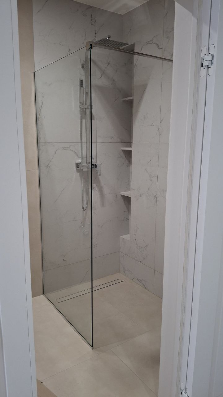 Душова виготовляється точно за розмірами вашого приміщення. Підійде навіть у найскладніші місця: вузькі ніші, перепади стін, скошені стелі або виступи