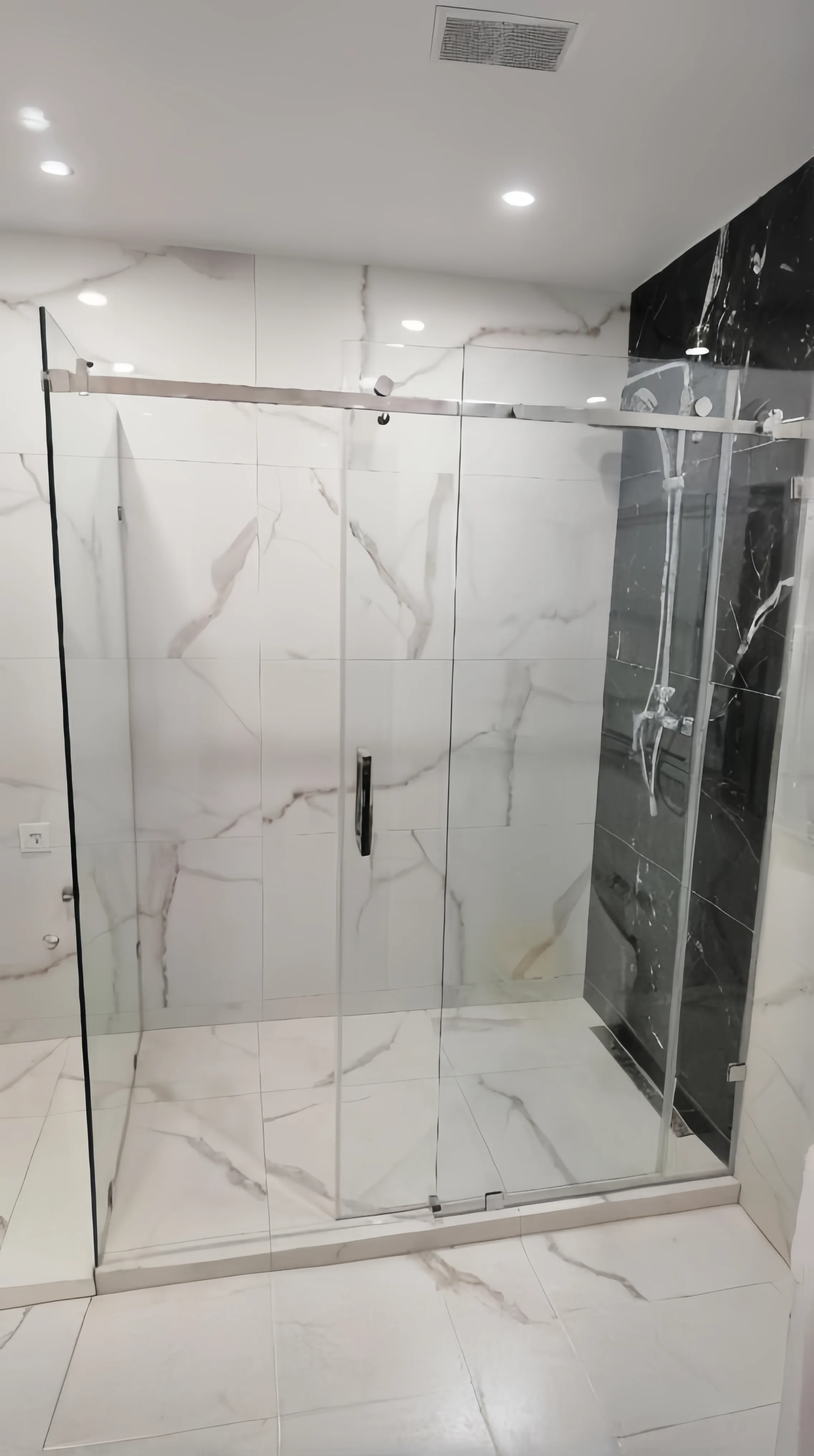 Скло легко миється навіть без хімії. Не жовтіє, як пластик, і не протікає, як шторки. Поставили — і маєте чистий, акуратний та сучасний вигляд у ванній.