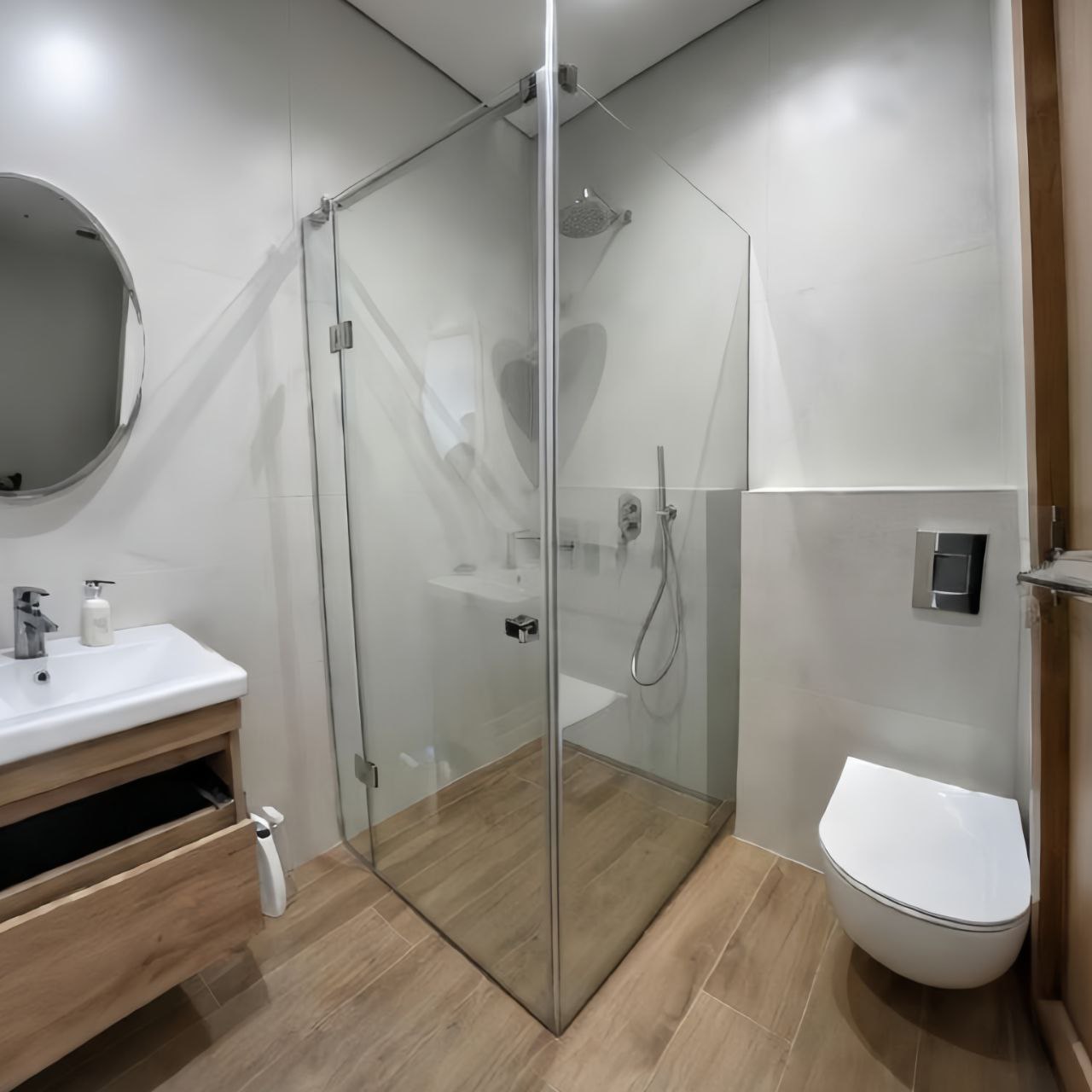 Скло легко миється навіть без хімії. Поставили - і маєте чистий, акуратний та сучасний вигляд у ванній