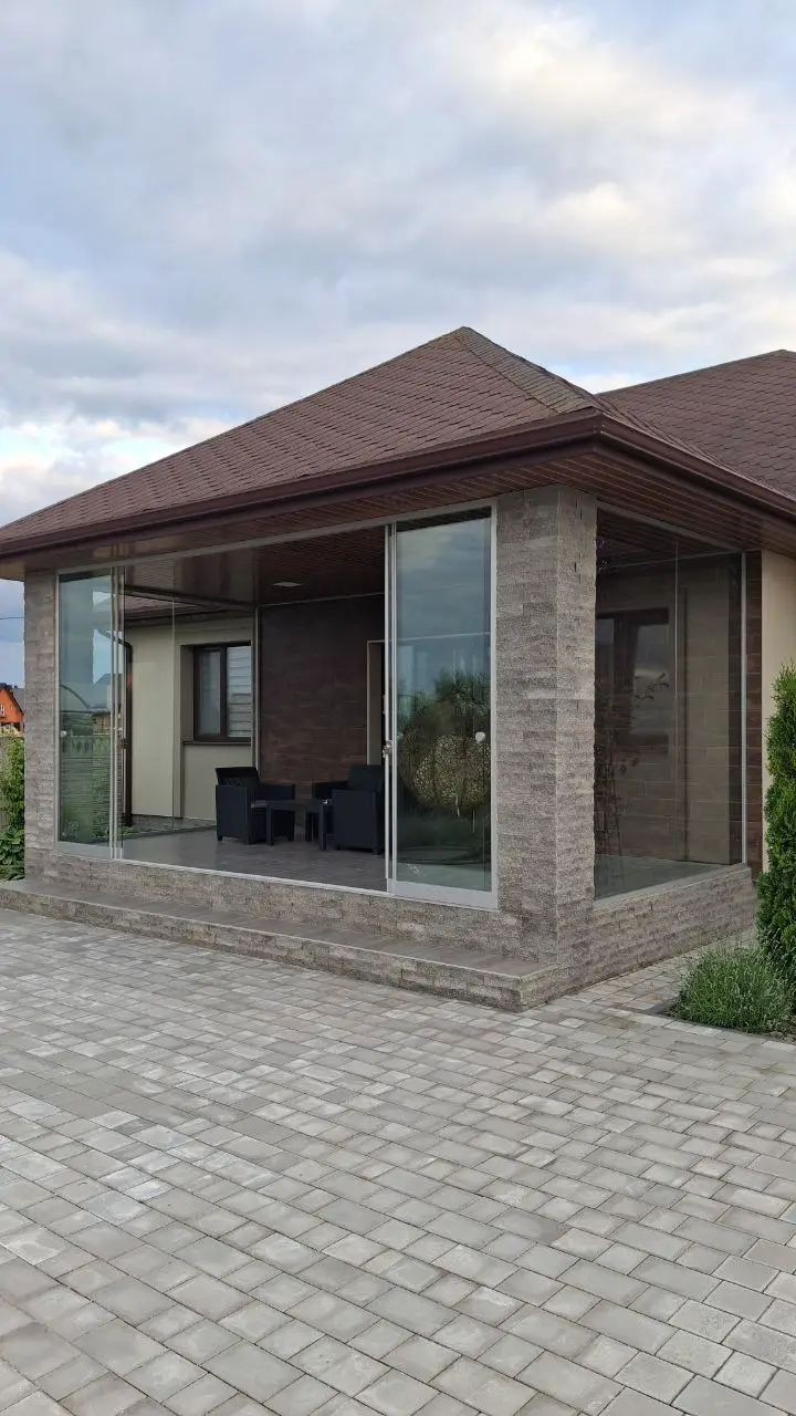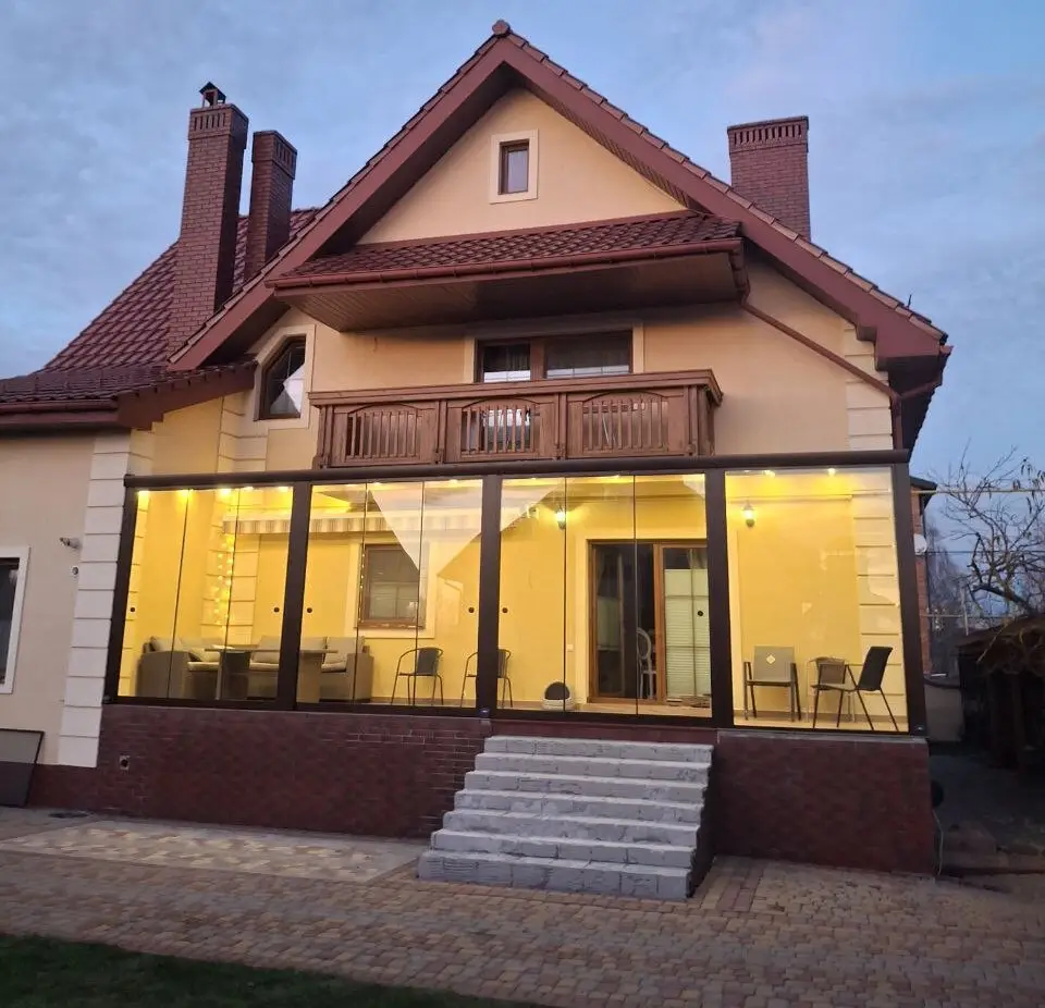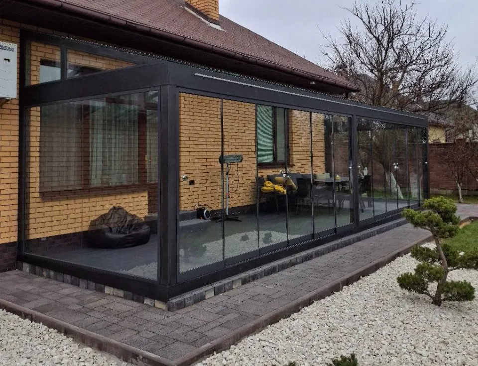 Засклена тераса захищає від дощу, вітру, снігу та ультрафіолетових променів, дозволяючи насолоджуватися простором у будь-яку пору року