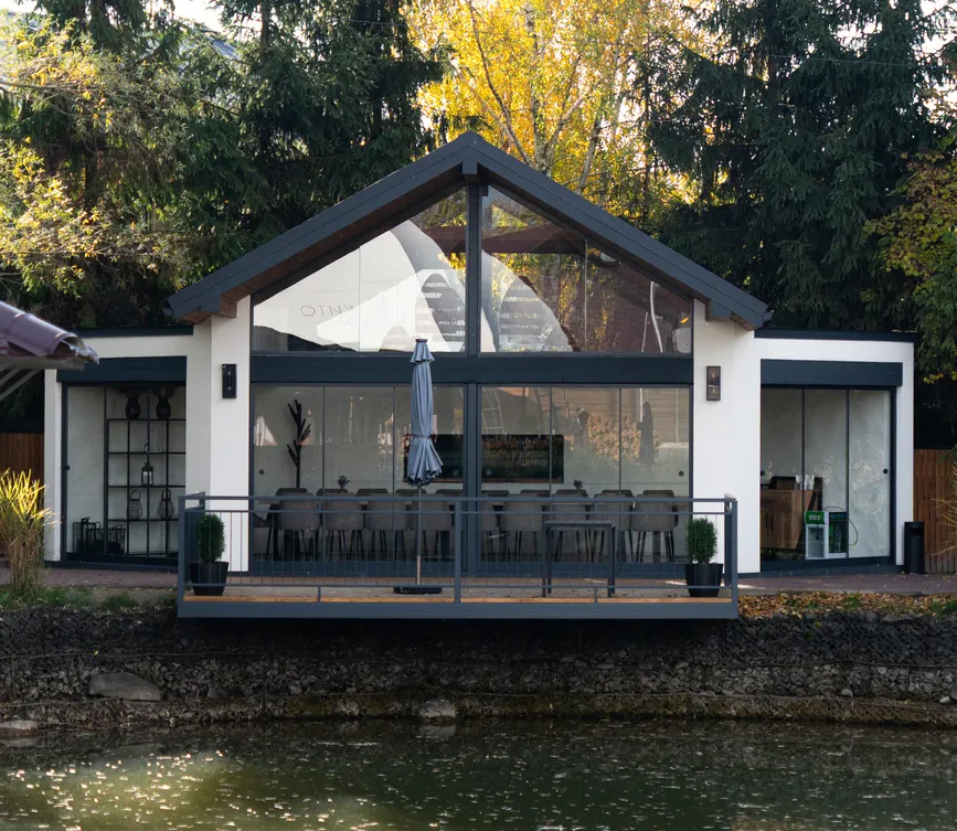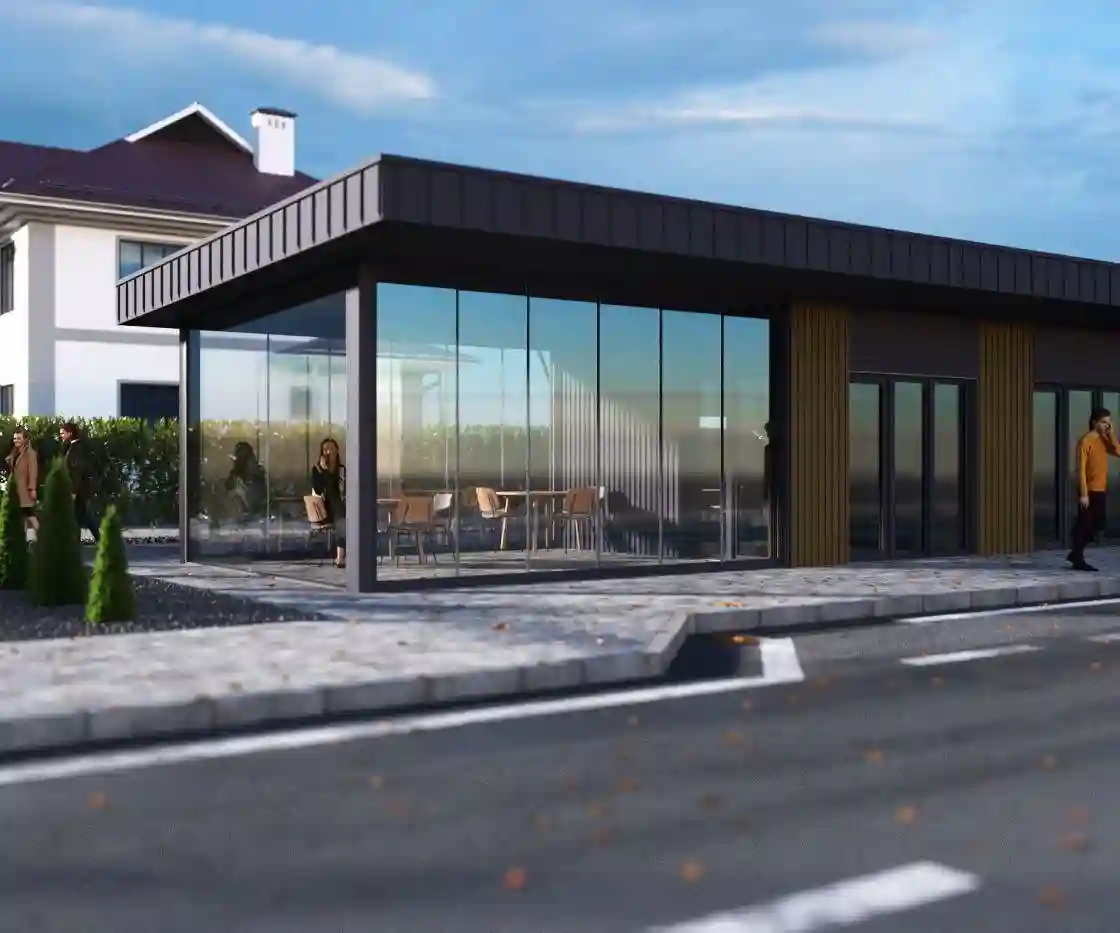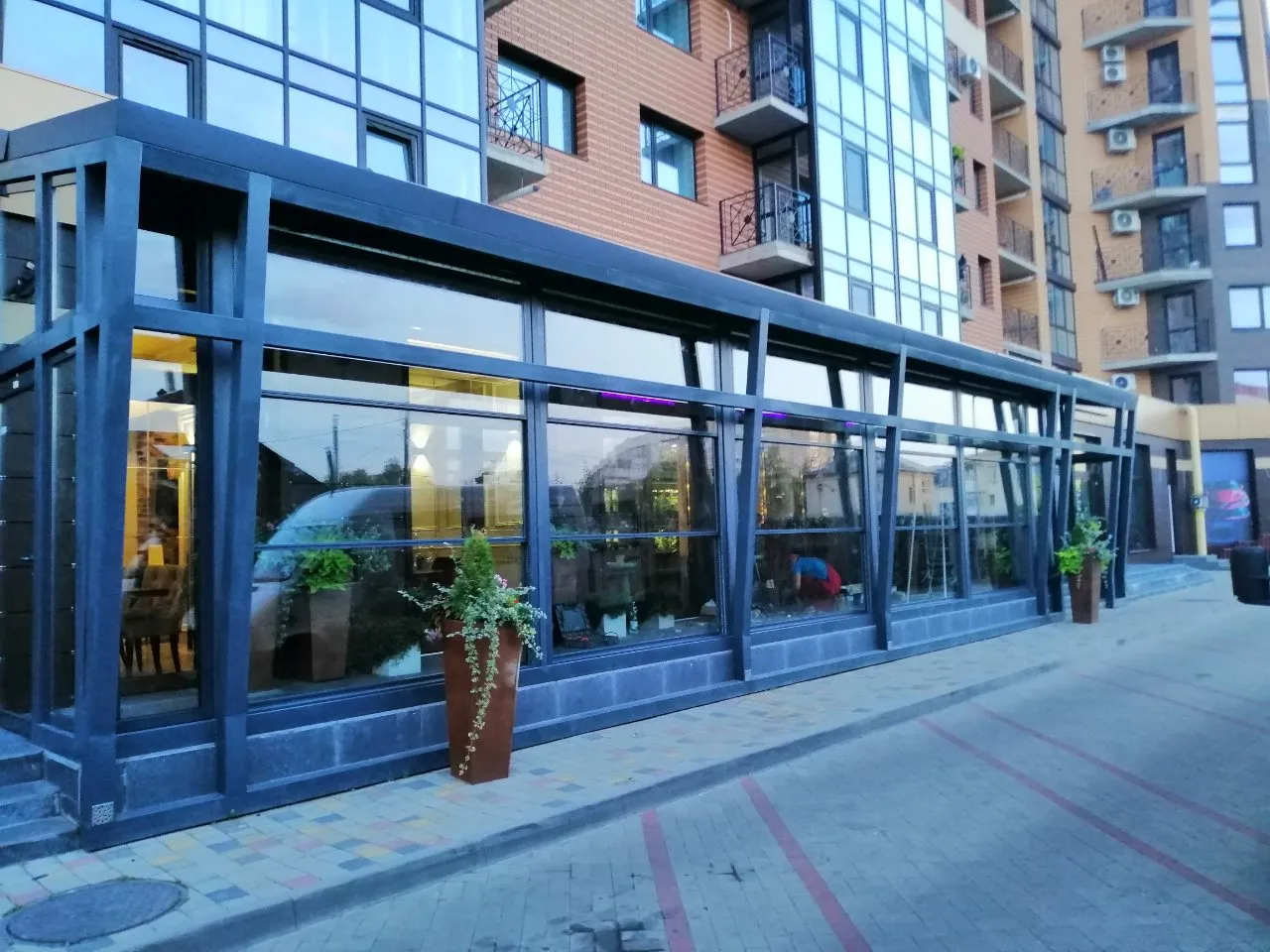 Скляні стіни забезпечують максимальне проникнення природного світла, створюючи світлий і приємний для перебування простір